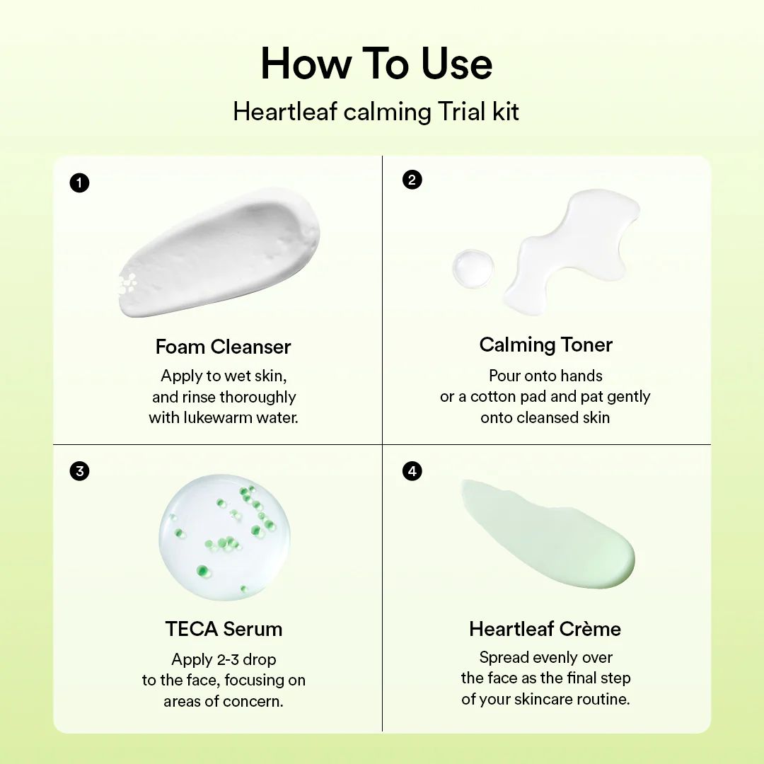 (Heartleaf foam 30ml + Calming toner 30ml + TECA capsule serum 15ml + Crème 20ml)
