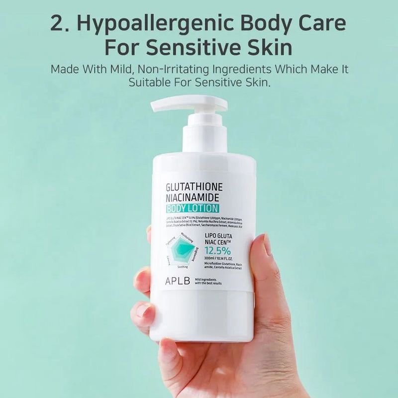 Loción corporal de textura lechosa y ligera que proporciona hidratación profunda, calma las irritaciones y mejora visiblemente la luminosidad de la piel. Perfecta para quienes buscan una piel suave, uniforme y saludable, sin sensación pegajosa.