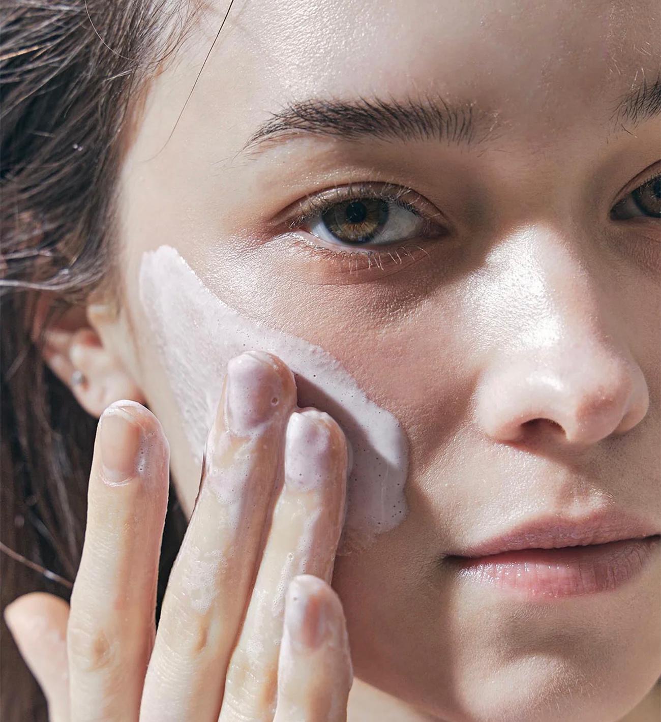 Tomar una cantidad adecuada del limpiador y añadir agua para hacer espuma. Masajear suavemente sobre la piel y enjuagar bien con agua tibia.