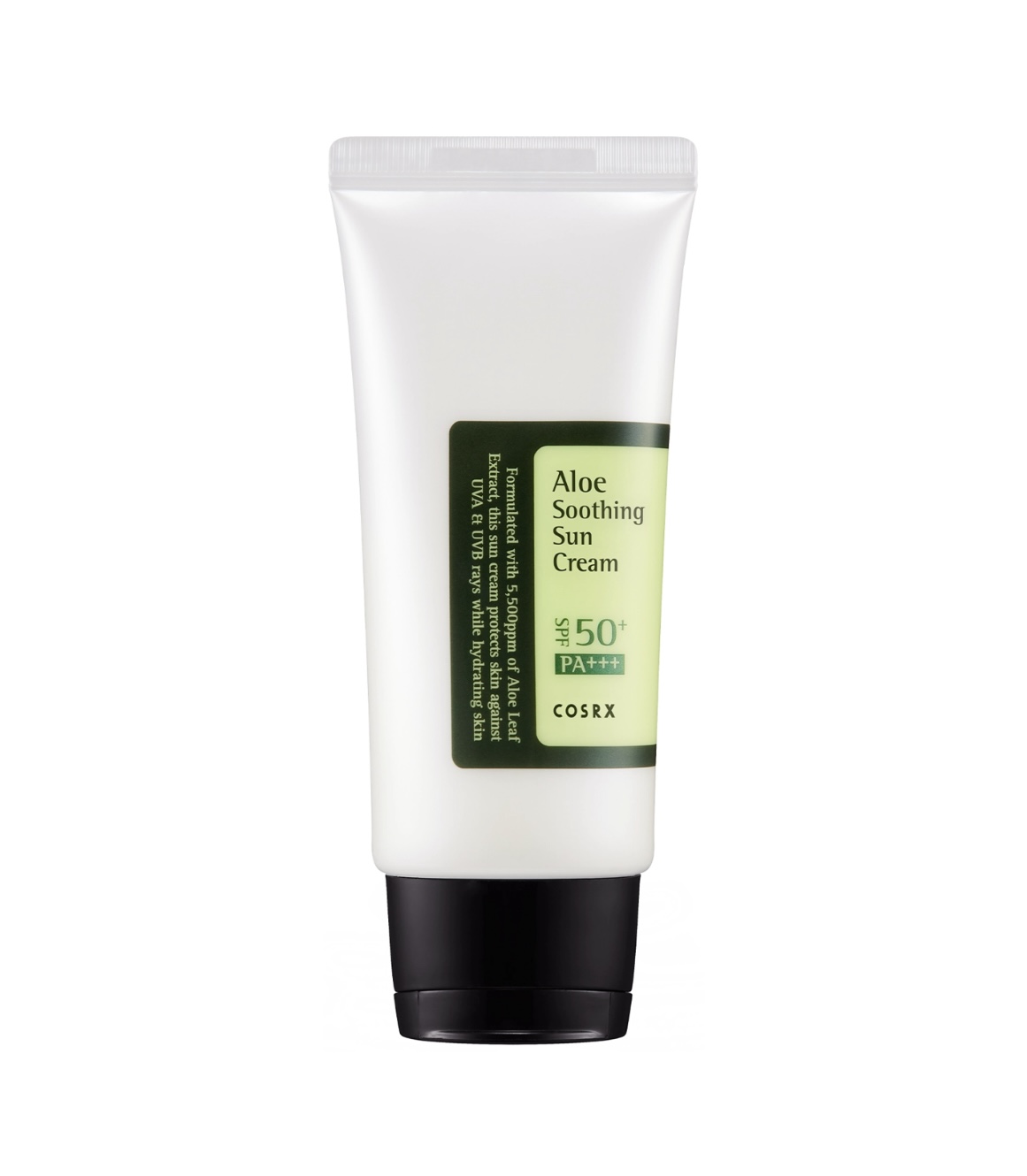 Este protector solar formulado con extracto de aloe vera que calma e hidrata tu piel mientras la protege de los rayos UVA y UVB con FPS50+ PA+++.
