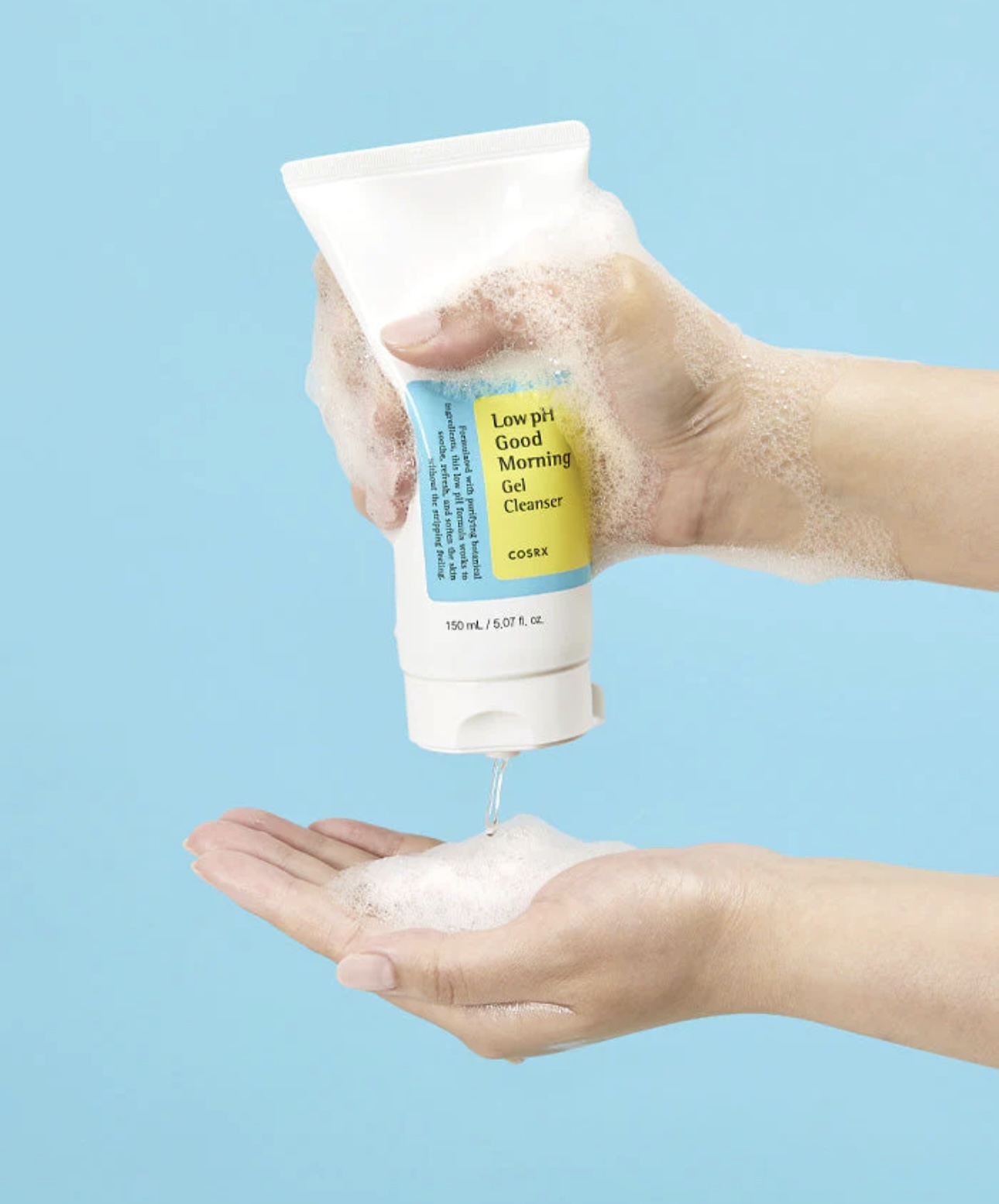 Aunque su textura parece un gel, al entrar en contacto con agua se convierte en una espuma envolvente y agradable.
