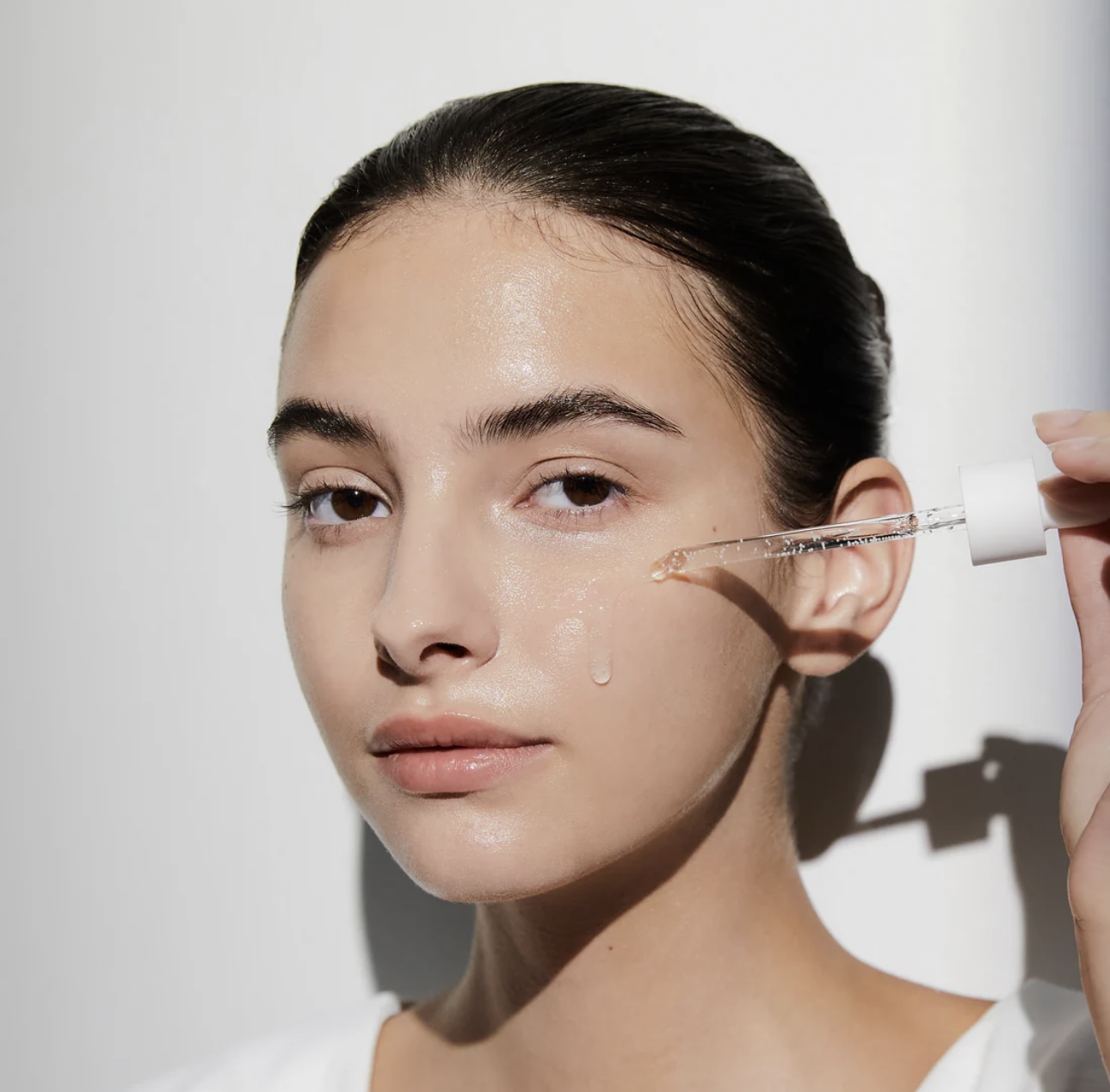 1. Después de lavarse la cara o aplicar tóner, use el gotero para aplicar en el rostro