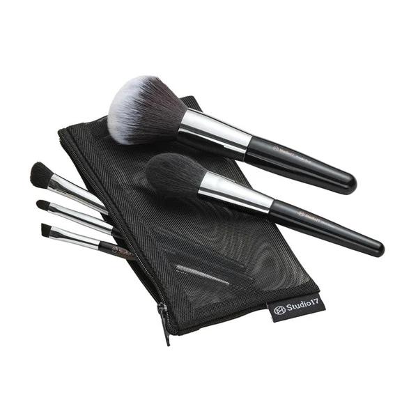 Consta de cinco pinceles esenciales para cubrir todo el maquillaje: incluye pincel para polvo, pincel para rubor, pincel para sombra de ojos, pincel difuminador y pincel dual para cejas.